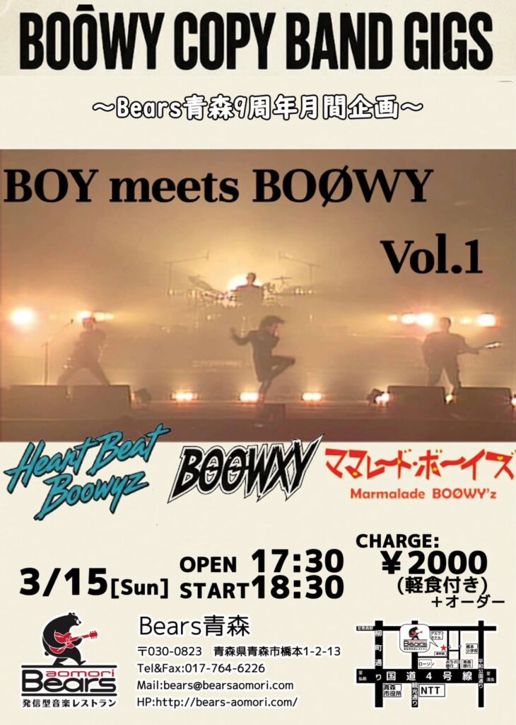 BOØWY COPY BAND GIGS|BOY meets BOØWY~Bears青森9周年月間企画~