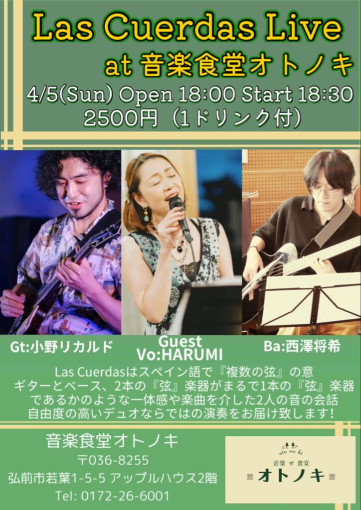 「Las Cuerdas Live at 音楽食堂オトノキ」へのお申し込み